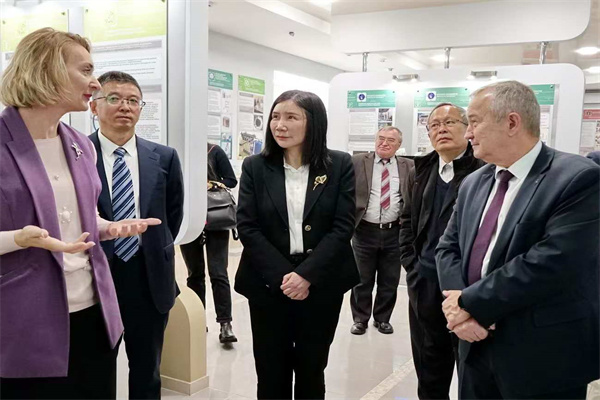 上午10點,郝群一行來到白俄羅斯國家科學院。謝爾蓋?奇日科親自在門口迎接并陪同參觀科學院展覽館,詳細介紹了科學院歷史沿革、研究方向和取得的成就。郝群一行認真觀看了白俄羅斯國家科學院近年來的最新科技突破,并與謝爾蓋?奇日科進行深入交流。