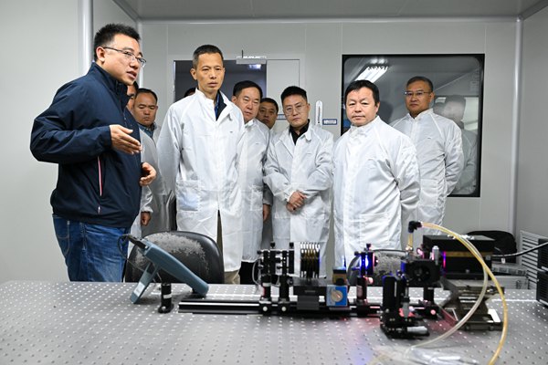來(lái)訪期間,周輝強(qiáng)一行參觀了高功率半導(dǎo)體激光國(guó)家級(jí)重點(diǎn)實(shí)驗(yàn)室、吉林省固體激光技術(shù)與應(yīng)用重點(diǎn)實(shí)驗(yàn)室和長(zhǎng)春理工大學(xué)展覽館。