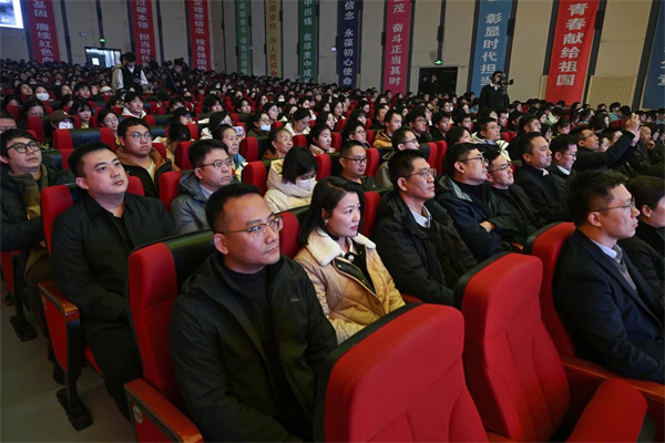 學(xué)校領(lǐng)導(dǎo)張寶宗、劉瑛、吳健、丁佳、付躍剛、王超,各基層黨委(直屬黨支部)書記、思政課教師、輔導(dǎo)員及全校學(xué)生代表800余人現(xiàn)場參加活動。