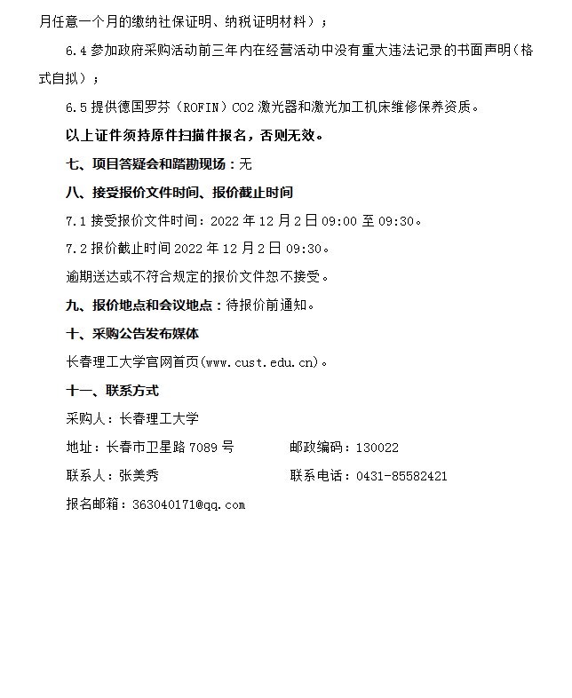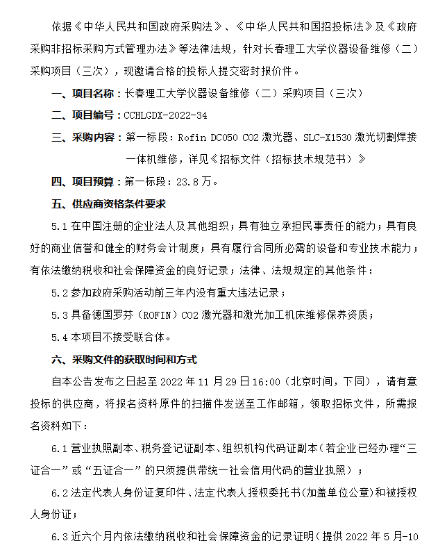 長春理工大學(xué)儀器設(shè)備維修(二)采購項(xiàng)目(三次) 競爭性談判公告