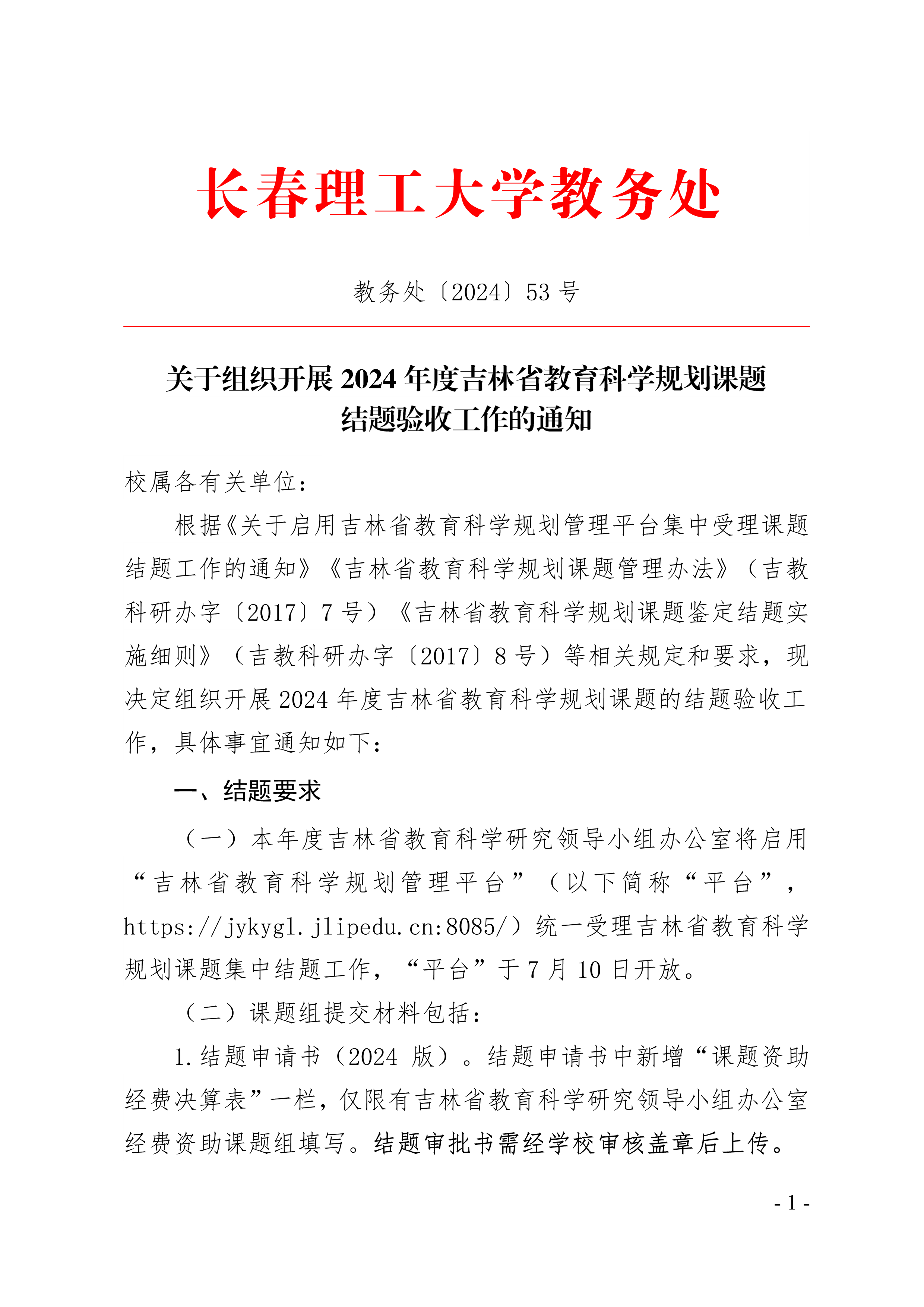 關(guān)于組織開(kāi)展2024年度吉林省教育科學(xué)規(guī)劃課題結(jié)題驗(yàn)收工作的通知