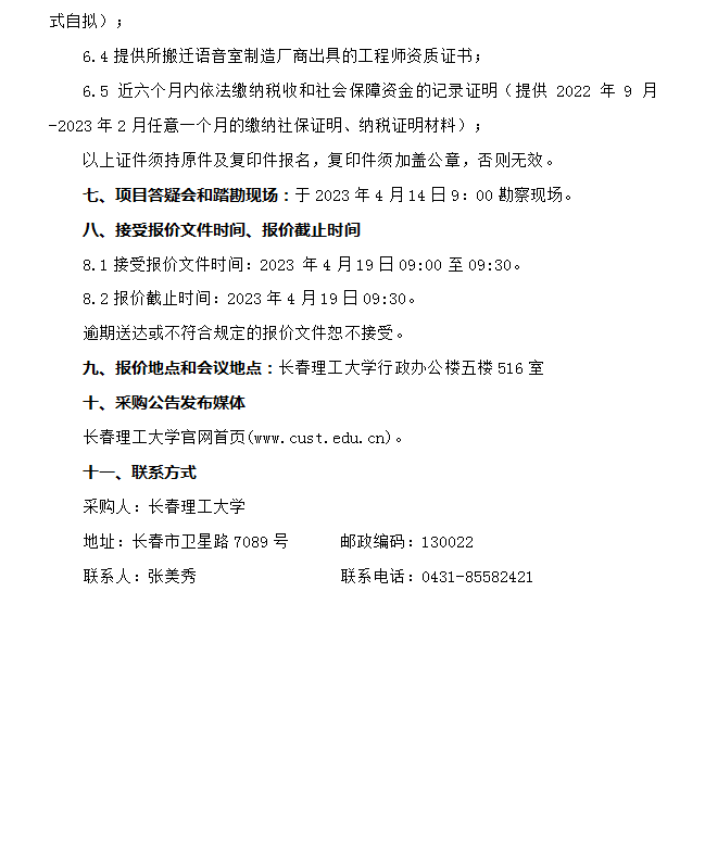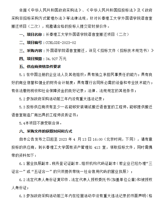 長春理工大學外國語學院語音室搬遷項目(二次)競爭性談判公告